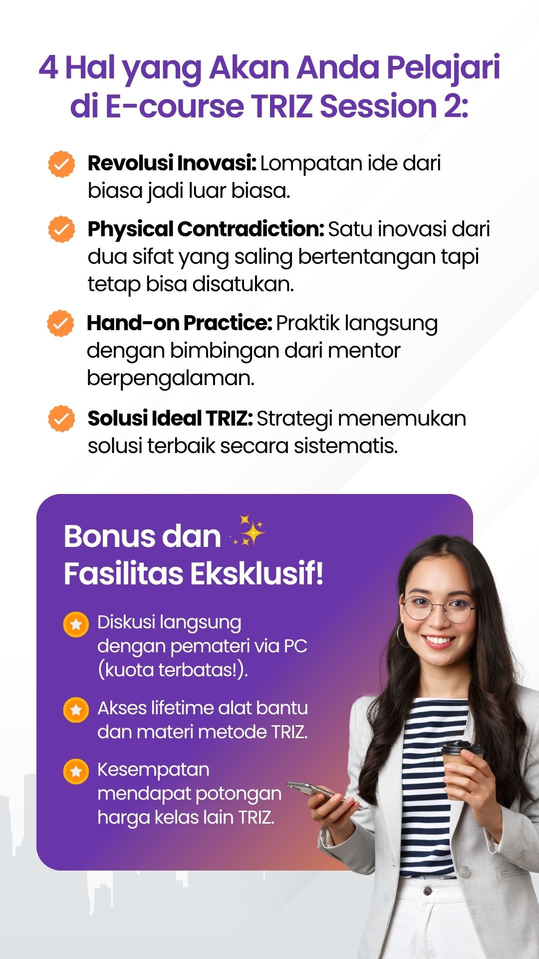 Pecahkan masalah anda dengan strategi inovatif yang sudah membantu lebih dari 300 orang dalam dunia prefesional, bisnis ataupun akademisi.